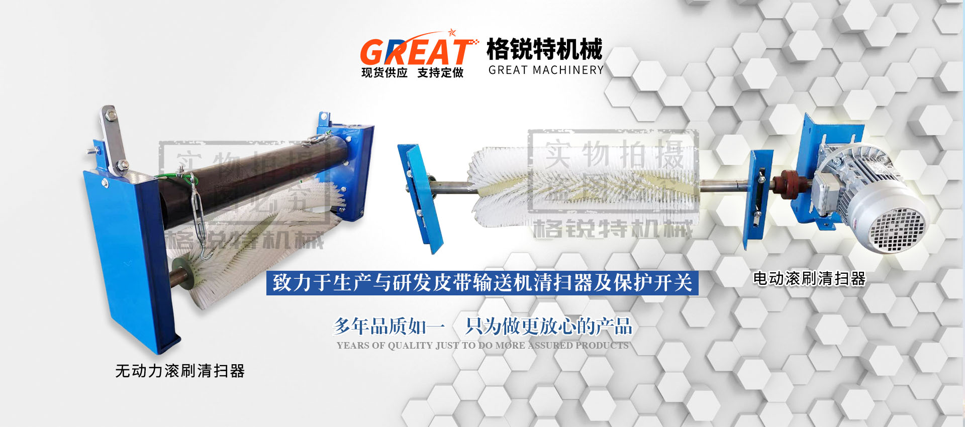 衡水格銳特機械科技有限公司常年致力于生產與研發皮帶輸送機清掃器及保護開關,其中主營聚氨酯清掃器,合金清掃器,電動滾刷清掃器,機械式滾刷清掃器,緩沖床,緩沖條,雙向拉繩開關,兩級跑偏開關,打滑檢測器,料流檢測器等保護開關,常年銷往各大水泥廠,煤礦廠,電廠,輸送機廠家,質量優越,價格實惠,望各大領導及同行來廠參觀指導,期待您的光臨!?。?/p>